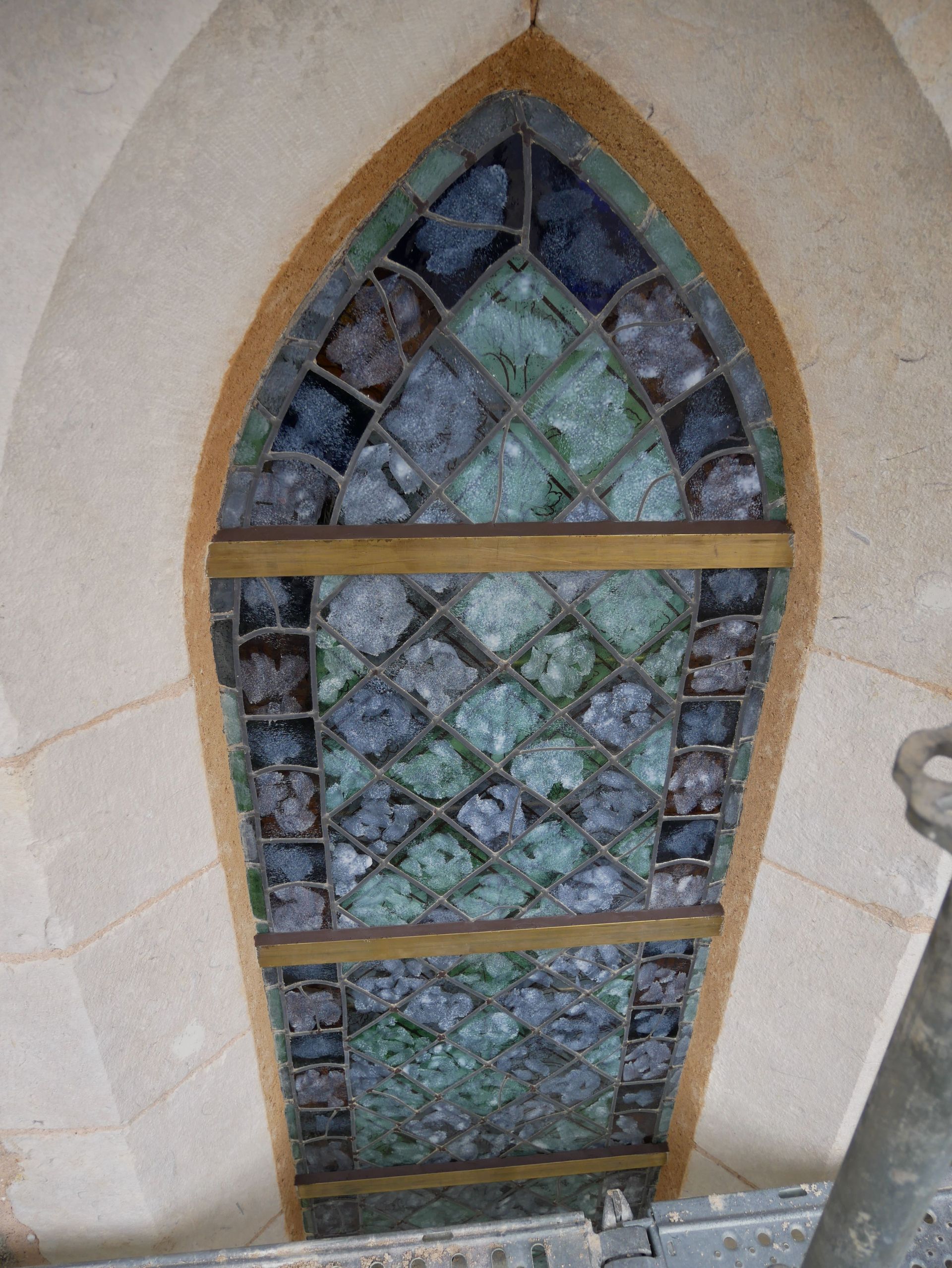 - Les vitraux sont restaurés avec la mise en place de dispositif de récupération des eaux de condensation.