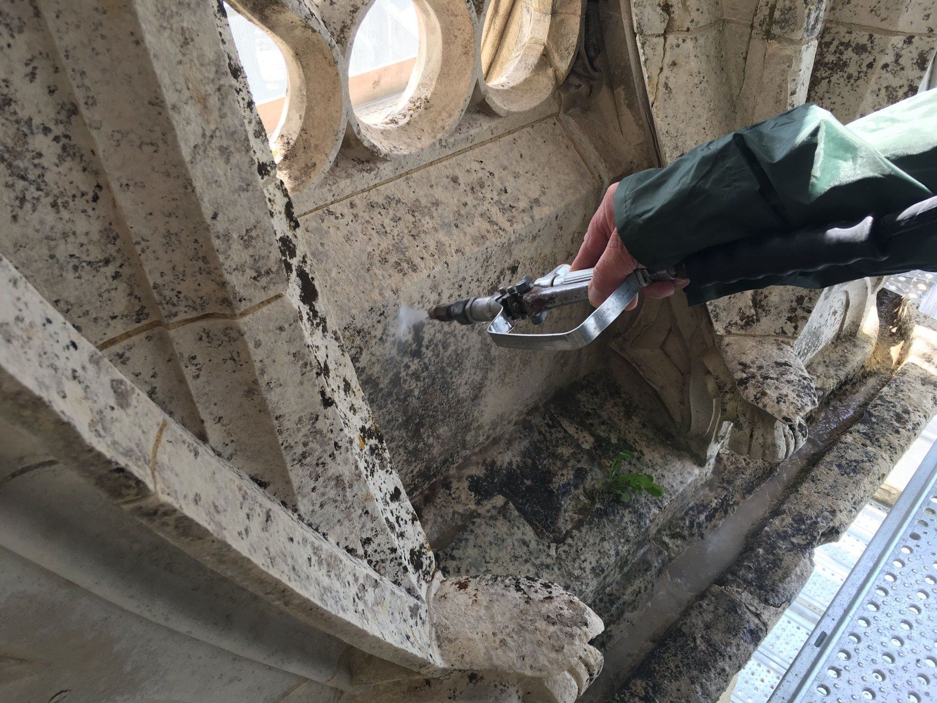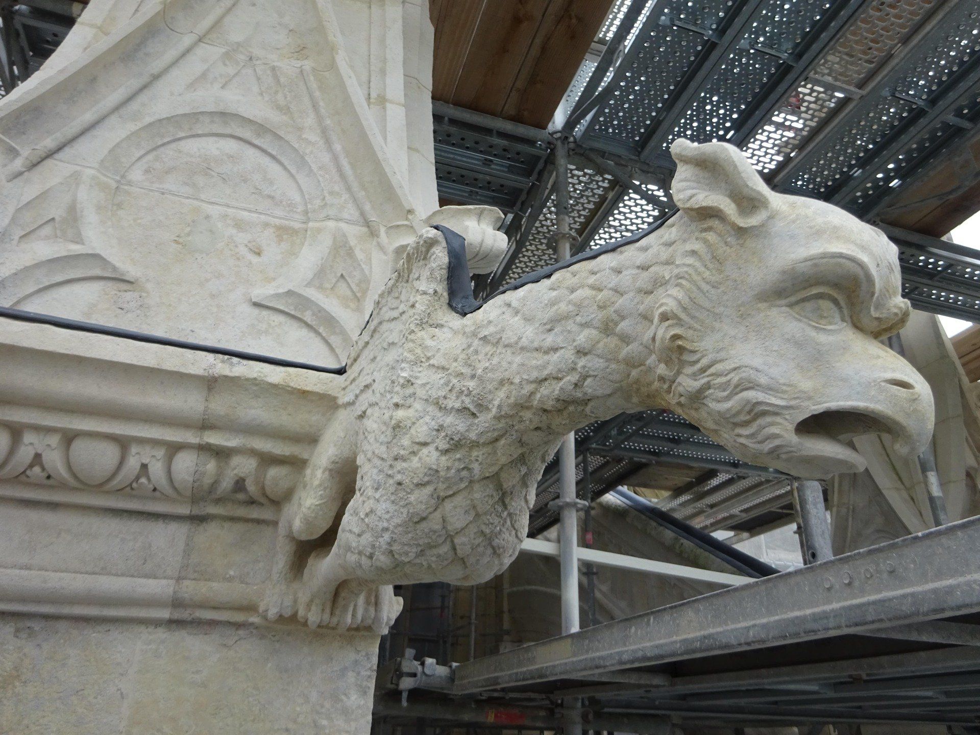 La remise en place de ce revêtement d’étanchéité, avec la mise en oeuvre complémentaire de gouttières sur les toitures et de descentes pluviales, visent à minimiser les écoulements des eaux des nombreuses gargouilles sur les exceptionnels décors sculptés des garde-corps et des façades du déambulatoire Sud, fragilisés par des traitements salins anciens et très sensibles aux effets de l’humidité.