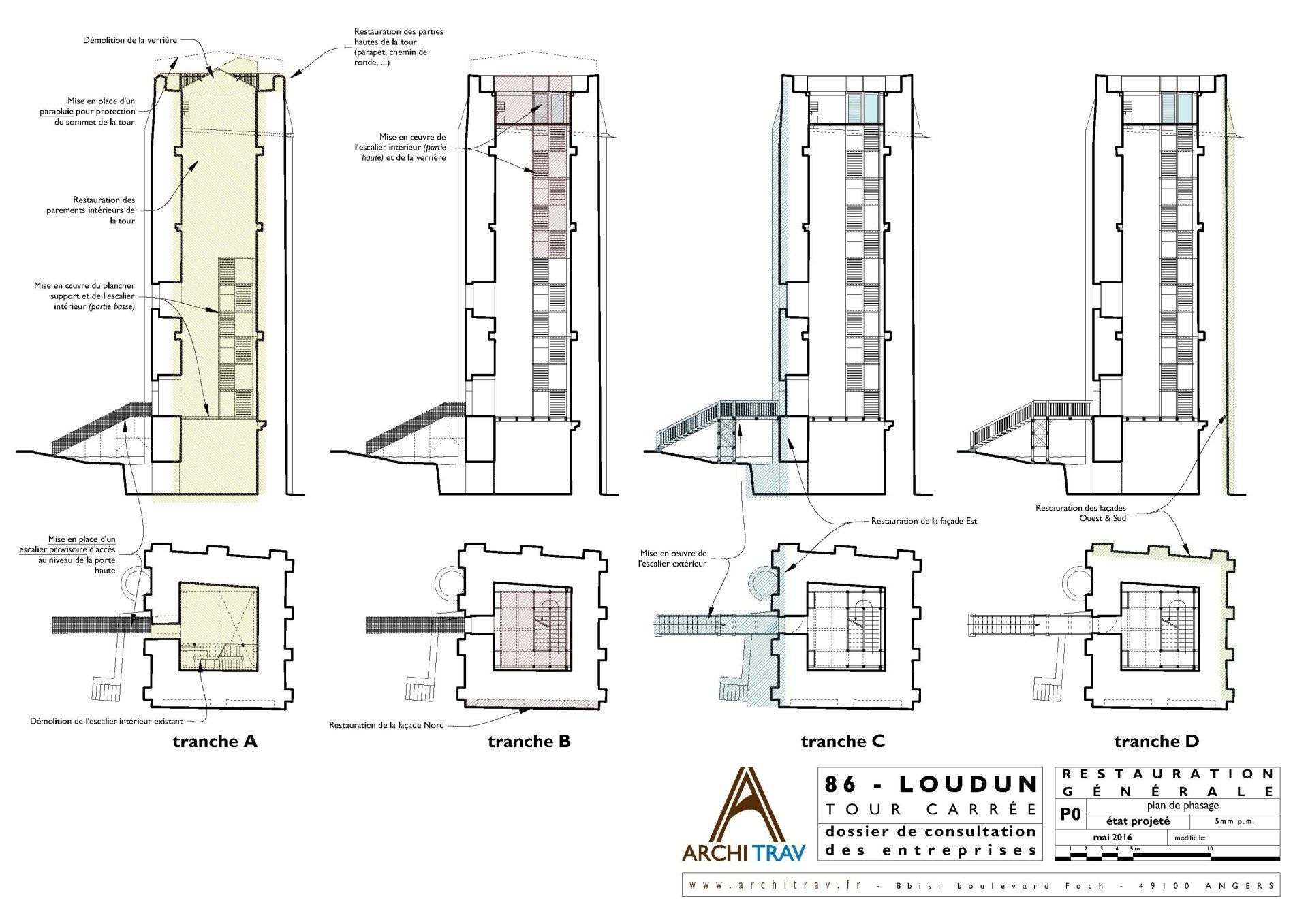 - Tranche B : restauration intérieure de la tour & aménagement de l’escalier intérieur (partie basse).