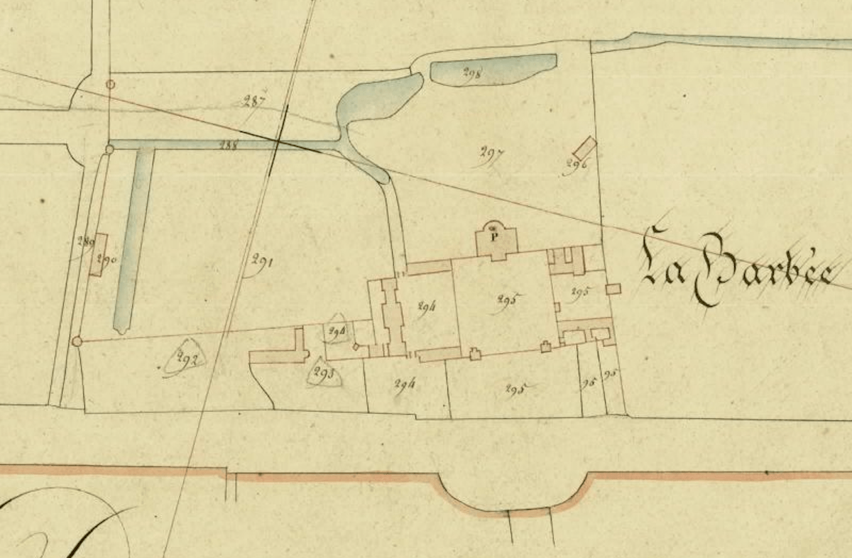 Grâce à l'étude des sources écrites anciennes décrivant le domaine de la Barbée (aveux, actes notariés, inventaires...), de l'iconographie et des plans anciens (peinture, plan de Cassini, Atlas de Trudaine, etc.) couplée avec l'étude des matrices cadastrales et de la toponymie, nous avons proposé des restitutions à différentes époques du paysage entourant le château de la Barbée. Il a ainsi été mis avant la mise en place d'un réseau d'axes convergeant vers le château et initiés peu avant sa construction au XVIIIe siècle ainsi que la permanence d'un certain nombre d'éléments de paysage (bois, prairie, étang, etc.)
