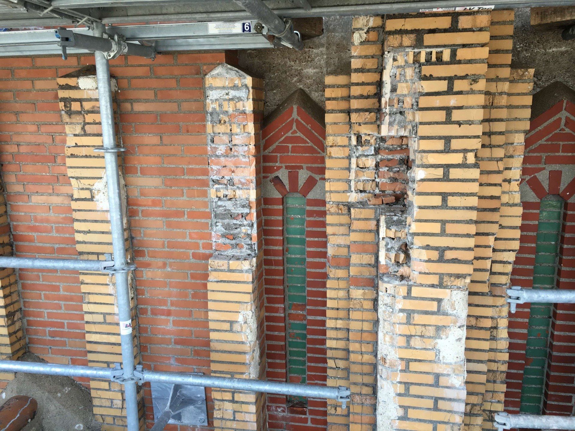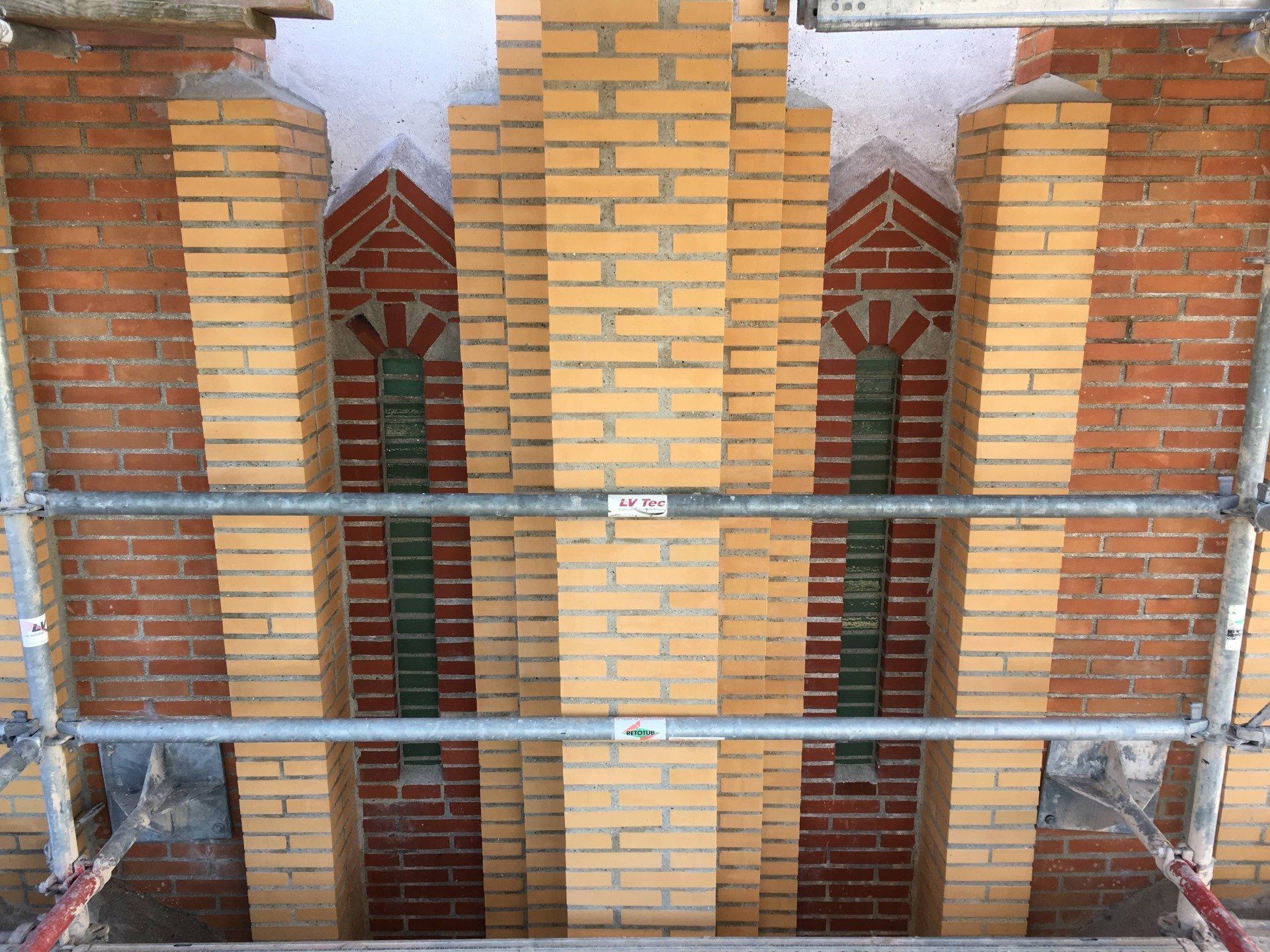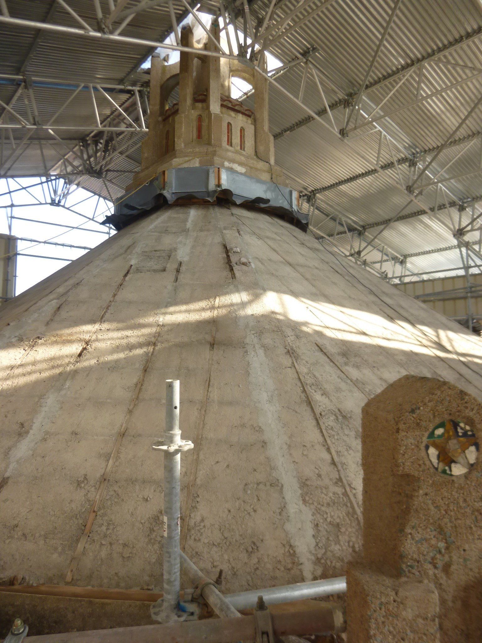 - Phase 1 (de 2016 à 2018) : La restauration de la structure du clocher (une coupole en béton armé recouverte d’une couverture en tuiles creuses) et de la façade Nord, avec la réfection des piles et parements recouverts de briques.