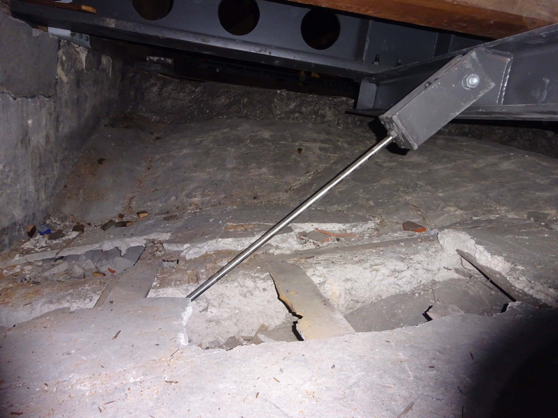 D’abord en procédant à la restauration des maçonneries proprement dites, et ensuite à la consolidation des voûtes par la mise en place de profilés métalliques dans les combles au droit des files III et IV.