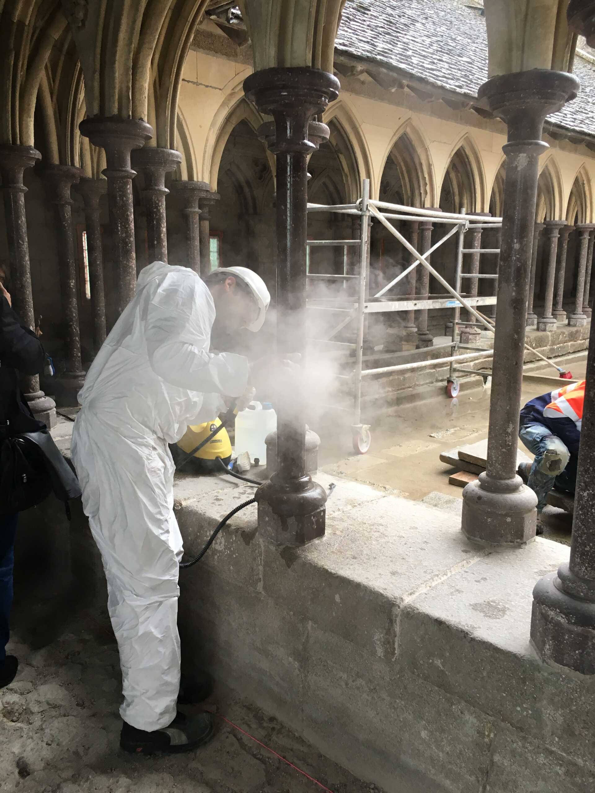 - Traitement biocide, dépoussiérage, nettoyage par micro-gommage et désincrustation photonique au laser)